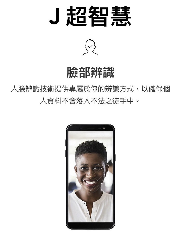 商品規格 品牌 : Samsung三星 種類 : 智慧手機 型號 : Galaxy J6 J600 顏色 : 黑色系, 金色系, 紫色系 螢幕尺寸 : 5.6吋 處理器類型 : 八核心 處理器型號 : Exynos 7870 處理器時脈 : 依原廠公告為主 主相機畫素 : 1300萬 前置鏡頭畫素 : 800萬 螢幕解析度 : 1480 x 720 (HD+) RAM記憶體 : 3GB ROM/內建儲存空間 : 32GB 記憶卡插槽 : microSD 作業系統 : Android 機身長度 : 149.3mm 機身寬度 : 70.2mm 機身厚度 : 8.2mm 機身重量 : 154g 電池容量(mAh) : 3000mAh 待機時間(最大) : 依網路狀況以及個人使用方式不同而有所不同 通話時間(最大) : 依網路狀況以及個人使用方式不同而有所不同 特色 : 臉部辨識, 雙卡雙待機, 支援4G LTE, 指紋辨識 傳輸介面 : Bluetooth藍牙 頻率系統 : 2G GSM, 3G WCDMA, 4G LTE FDD, 4G LTE TDD 上網方式 : 3G, 4G, WiFi 4G LTE頻段 : 4G FDD LTE 頻率 B1(2100), B2(1900), B3(1800), B4(AWS), B5(850), B7(2600), B8(900), B12(700), B13(700), B17(700), B20(800), B28(700), B66(AWS-3) 4G TDD LTE 頻率 B38(2600), B40(2300), B41(2500) 雙卡頻段 : 4G+3G SIM卡 : nano sim NCC認證碼 : CCAH184G0190T9 標準配備 : 依原廠提供為主 保固 : 1年 保固說明 : 保固期限:原廠提供硬體1年有限保固 保固範圍:非人為因素損壞 (商品一經刷機,保固失效) 送修方式:三星全省服務據點 贈品 : 鋼化保護貼 氣墊保護套 多功能手機架指環扣 備註 : 鑑賞期並非試用期,開封前請再度確認您所訂購的型號,如需退貨或是換貨,請保持產品原包裝。 退換貨的商品必須為全新狀態且包裝完整(包含主機、包裝內外盒不得刮傷破損,配件贈品及隨附文件不得缺件),手機如有使用行動網路連線(4G/3G/WIFI)將無法退貨、切勿使用密碼鎖機功能、軟體升級、包膜、IMEI碼(手機序號)上網註冊、刷機及其他會破壞原廠軟體的操作,如未達上述之規範,將造成費用產生,請您務必了解。 注意事項 : 以上資料與圖片僅供參考!規格及隨機標準配備以實際出貨為主,如有錯誤或不符者,將不再另行補寄或更換,謝謝! 體驗說明 使用方法說明 依原廠公告為主 注意事項 ◎鑑賞期並非試用期,開封前請再度確認您所訂購的型號,如需退貨或是換貨,請保持產品原包裝,切勿破壞原廠外盒包裝。 ◎退換貨的商品必須為全新狀態且包裝完整(包含主機、包裝內外盒不得刮傷破損,配件贈品及隨附文件不得缺件),手機如有使用行動網路連線(4G/3G/WIFI)將無法退貨、切勿使用密碼鎖機功能、軟體升級、包膜、IMEI碼(手機序號)上網註冊、刷機及其他會破壞原廠軟體的操作,如未達上述之規範,將造成費用產生,請您務必了解。