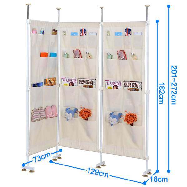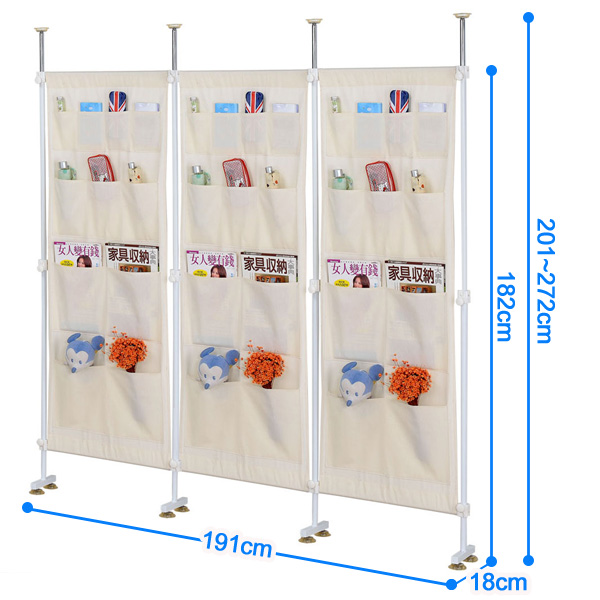 頂天不搖晃 具隔間及置物效果 附收納袋可收納小物 收納相當便利 商品產地 精品嚴選 100 台灣製造 商品尺寸 組成一字型 寬191 深18 高201 272公分 高度可伸縮 商品尺寸 售價:2099