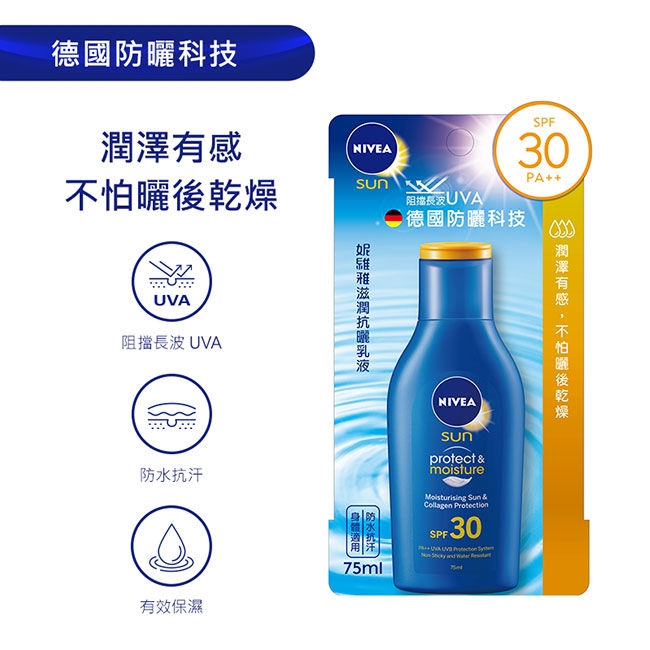 妮維雅 滋潤抗曬乳液 SPF30 PA++ 75ml 潤澤有感 維生素E保濕配方