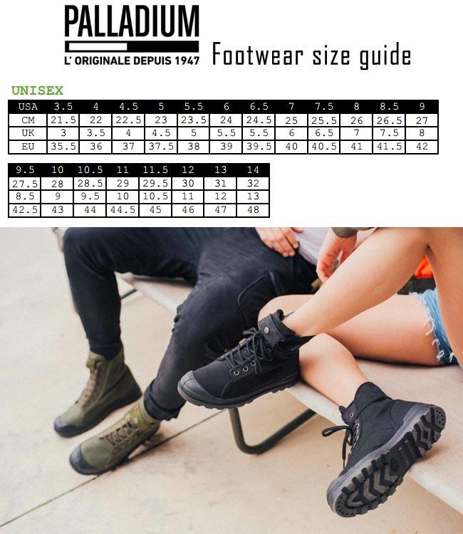 商品規格 定位 : 專櫃品牌 品牌 : Palladium 適用性別 : 男生 款式 : 帆布鞋 尺寸 : 26.5cm, 27cm, 27.5cm, 28cm, 28.5cm 版型 : 正常 鞋面主材質 : 丹寧/帆布 顏色 : 黑色系 體驗說明 使用方法說明 無 注意事項 我們所提供為全新產品,並提供以下保證: - 保固期限:無 - 保固範圍:新品瑕疵 顧客諮詢服務中心:本站客服中心 【退換貨須知】 - 商品10日內換貨,僅享有「一次」免運費服務,請見諒。 - 若訂購時,選購頁面並無顯示所需SIZE時,代表此SIZE已售完。 - 尺寸不合可更換,請您安心選購。 - 商品圖檔顏色因電腦螢幕設定差異會略有不同,以實際商品顏色為準。 - 申請退貨服務時,請將商品做簡易包裝,勿將膠帶、膠水直接黏貼於鞋盒上方。 - 鞋盒如有毀損,恕無法提供退換貨申請。 【尺寸 tips】 尺寸對照僅供參考,請依個人的經驗做判斷。量一下自己的腳長和腳寬,有皮尺的話就踩在皮尺上量,或者拿張紙,踩上去用筆將自己的腳形描出來,拿尺量最長和最寬各為幾公分。 - 腳寬的部份是指腳掌最寬的部份,大約從大姆趾到小姆趾下方,取最寬的寬度。 - 腳長的部份是指腳掌最長的部份,大約是二姆指到腳跟的長度,取最長的長度。 【注意事項】 - 商品出貨包裝皆全程錄影存證, 並有封條保護。 - 商品顏色呈現因個人電腦螢幕差異略有不同,請依實際商品顏色為準。 - 依照消費者保護法的規定,商品鑑賞期間(非試用期),如需退換貨請保持『全新未經使用』狀態且包裝完整 (包含購買商品、附件、內外包裝、隨機文件、贈品、包裝彩盒等) ,如有毀損,恕無法提供退換貨申請。