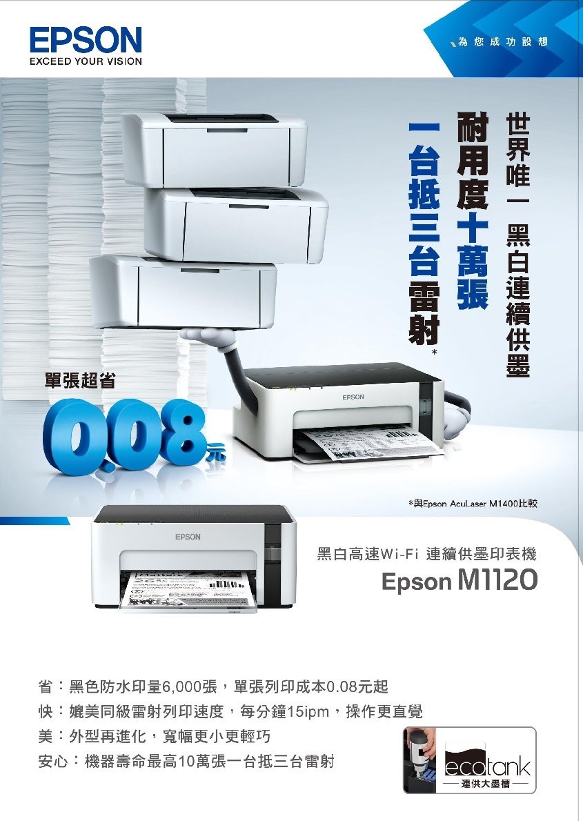售價隨時會調整;特價有時效性,有需要的人動作要快!最近有些網友在問EPSON M1120 高速 Wi-Fi 黑白 連續供墨印表機 公司貨要去哪裡買最便宜呢?LANCE不吝嗇分享他的生活點點滴滴;包括網路上購買的任何東西.希望我整理的資料能對我大家LANCE有幫助。LANCE是我的好朋友,為人正直又有愛心;LANCE他只會推荐好東西!