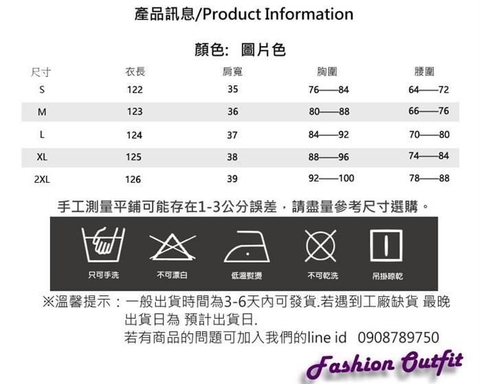 一般出貨時間為3 6天內可發貨 若遇缺貨最晚出貨為預計出貨日 品牌定位 流行時尚品牌 M2M款式 洋裝適穿性別 女生尺寸 S M L XL XXL袖長 七分褲長 裙長 過膝主材質 聚酯纖維 售價:1185
