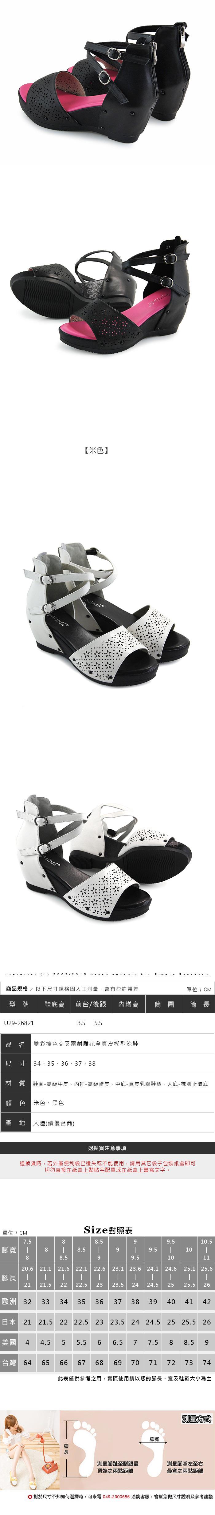 GREEN PHOENIX 雙彩撞色交叉雷射雕花全真皮楔型涼鞋U29-26821數量有限,售完為止!限量是殘酷的,不要猶豫入手要快~希望我整理的資料能對我大家SAM有幫助。超多的鄉民很都說GREEN PHOENIX 雙彩撞色交叉雷射雕花全真皮楔型涼鞋U29-26821 無敵好的!網路價格隨時會調整,請以原網購平台資料為準!SAM也嘗試積極推荐,並介紹我該商品優缺點。