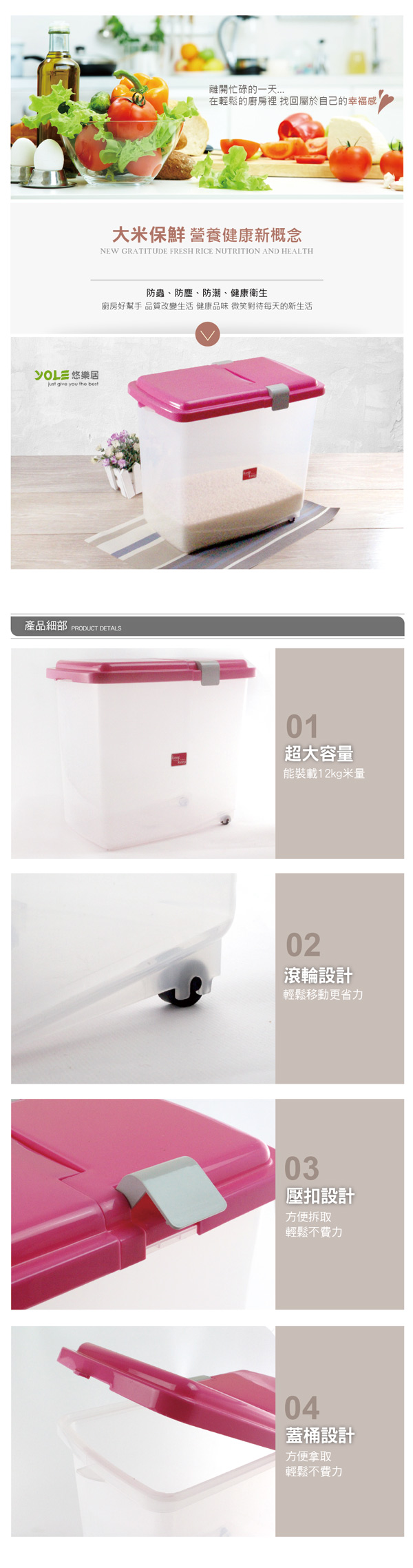 【YOLE悠樂居】大容量滾輪保鮮米桶12kg數量有限,售完為止!限量是殘酷的,不要猶豫入手要快~雅虎購物、momo購物及博客來是我比較常去逛的EC網購平台,常常有優惠商品可撿便宜。一直以來我都很相信ABEL推荐的東西。走過路過,千萬不要錯過!請參閱詳細商品資訊【YOLE悠樂居】大容量滾輪保鮮米桶12kg整理資訊大致有分享文、開箱文、試用文、評鑑文、推薦文、是否便宜、優缺點等資訊.