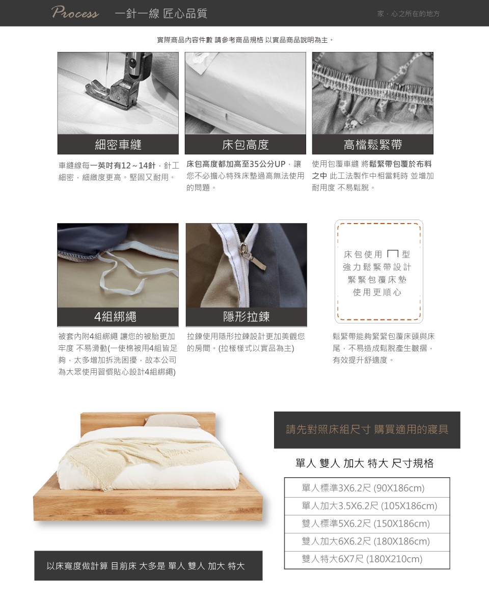 我要購買 100 台灣製造 高規格絲光精梳棉 精密剪裁專業車工 主商品 DON 原色時尚 雙人精梳純棉床包組 產品內容 材質 雙人純綿床包x1 5x6 2尺 150x186公分 可包覆床墊高度 35公 |  【夢菲思】四線蜂巢式獨立筒床墊-雙人5尺 售價:7688