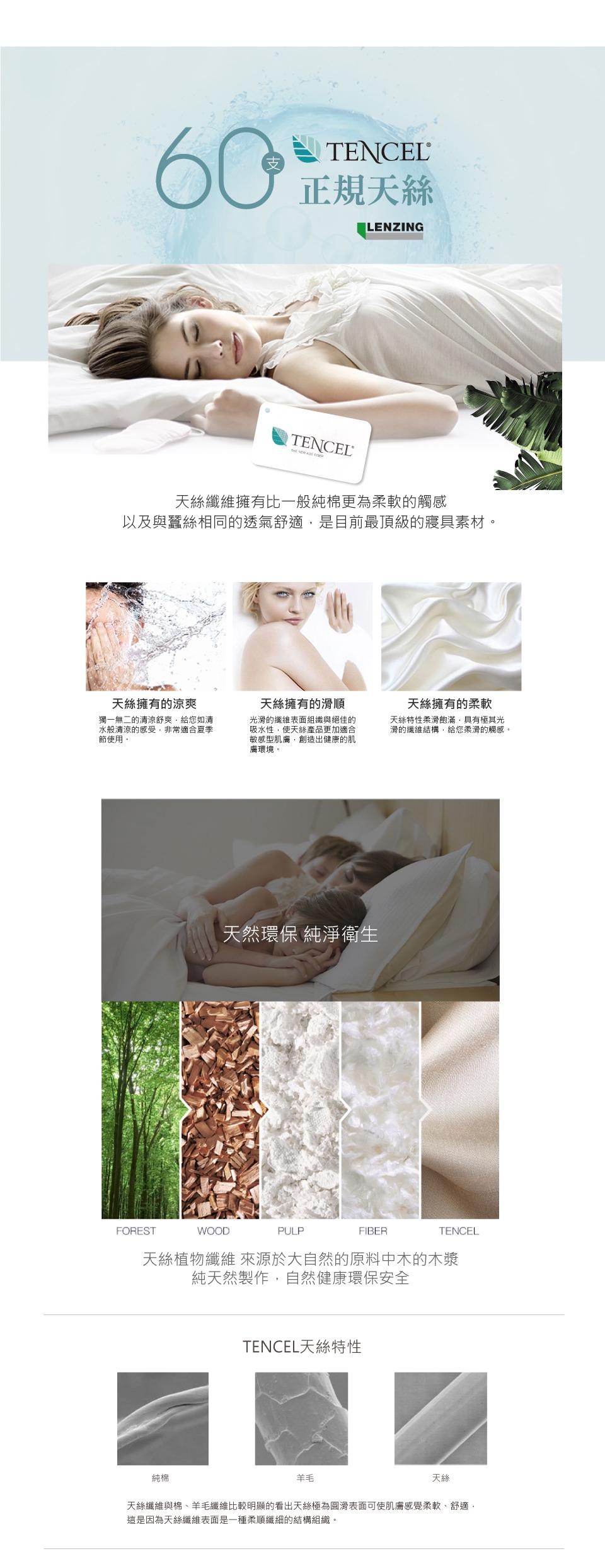 歐盟紡織協會認證 台灣安心寢具認證 質地細密 觸感柔順 種類 床包類型 兩用被床包組規格 雙人加大主材質 天絲材質說明 材質 100 萊賽爾纖維 天絲 填充物 100 聚酯纖維功 售價:7680
