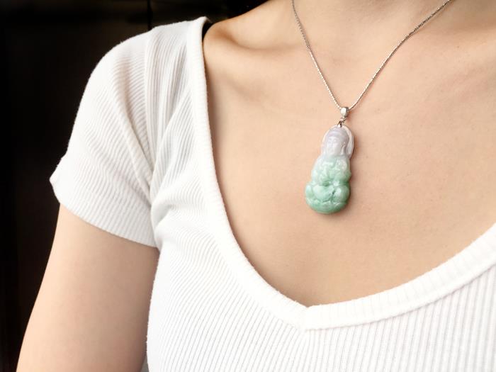商品規格 商品名稱 : 天然緬甸A貨觀音翡翠 K金墜飾 翡翠尺寸約 : 40 x 20 x 7 mm 翡翠重量 : 11g 墬頭金屬 : 14K金足金 廠商編號 : JJN13 商品產地 : 緬甸 附公司保證書、925純銀鍊與精美包裝 體驗說明 使用方法說明 無 注意事項 *商品圖檔顏色因電腦螢幕設定差異會略有不同,以實際商品顏色為準。 *天然礦石難免有天然石紋、雜質、礦痕、羽裂紋等,皆屬自然正常現象,追求完美者請再三考慮。 *退貨限制:商品有十天審閱期如需退換貨請保持商品完整,但商品必須為『全新未經使用』狀態且完整包裝(包含購買商品、附件、內外包裝、隨機文件、贈品等)