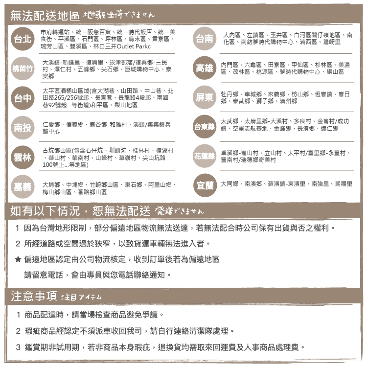◆ 本商品只限台灣本島運送,外島與偏遠山區恕不運送。